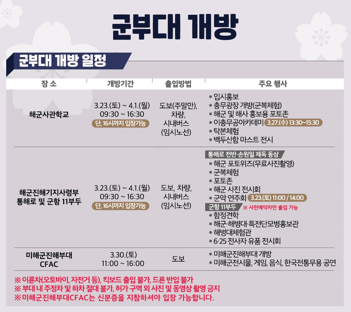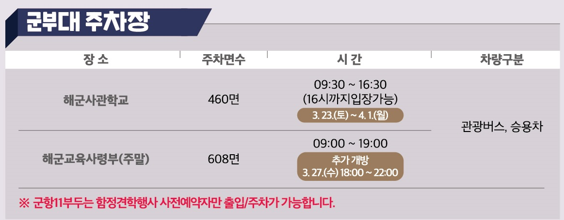 03.23(토)~04.01(월), 09:30~16:30(군부대 개방시간)