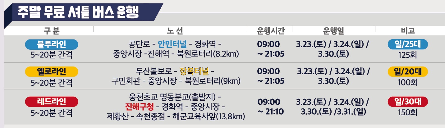 3. 교통 - 진해가는 교통수단, 주차장, 셔틀버스, 시티투어 버스 등