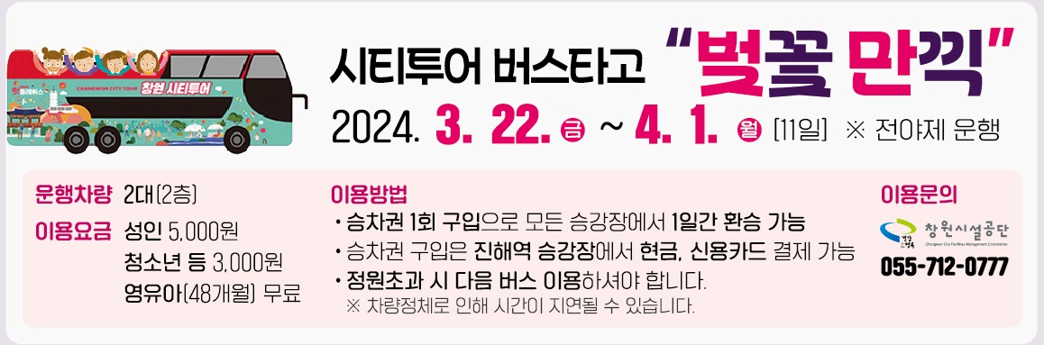 주말만 운행. 03.23(토)~03.24(일), 03.30(토)~03.31(일) , 09:00~18:00
