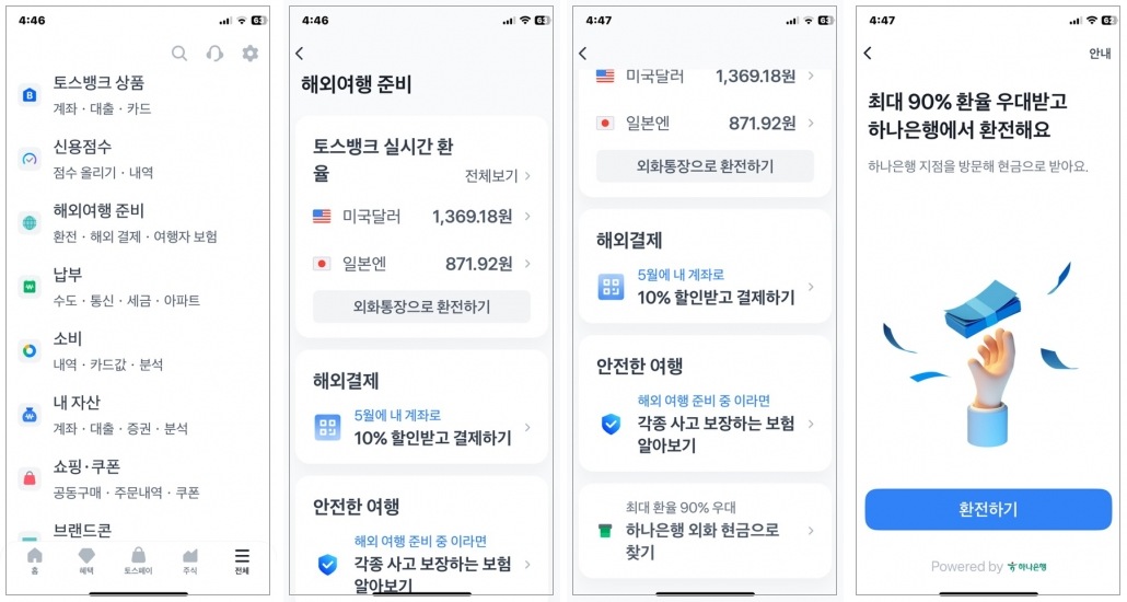 ● 토스뱅크> 해외여행준비> 하나은행 외화 현금으로 찾기> 환전하기