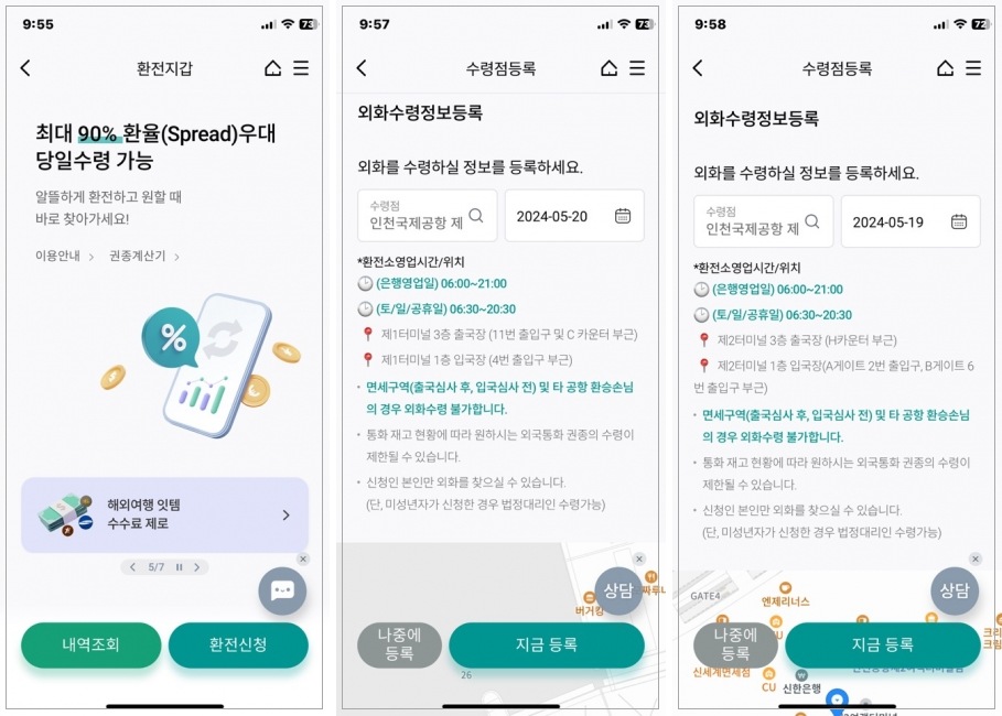 • 공항 환전소 수령가능시간