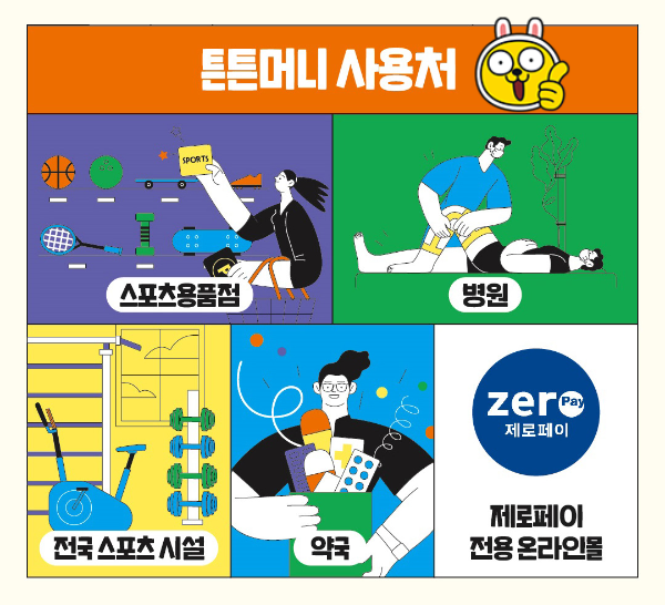 2024년 새롭게 시행되는 스포츠활동 인센티브 튼튼머니는 국민체육공단에서 주관하는 스포츠복지 서비스입니다. 스포츠활동에 참여, 인증하면 튼튼머니를 적립하여 스포츠용품 구매와 스포츠시설 등록, 약국과 병원에서 사용할 수 있습니다.