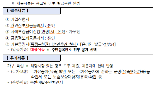 ※ 제출한 서류에 미비(누락·식별 불가) 있는 경우 별도 추가(보충)서류를 요청하지 않고 참여자 선발에서 제외(작성 및 제출에 대한 책임은 본인에게 있음